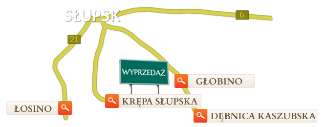 Kliknij na mapie lokalizację oznaczoną tabliczką Wyprzedaż, aby poznać szczegóły oferty promocyjnej